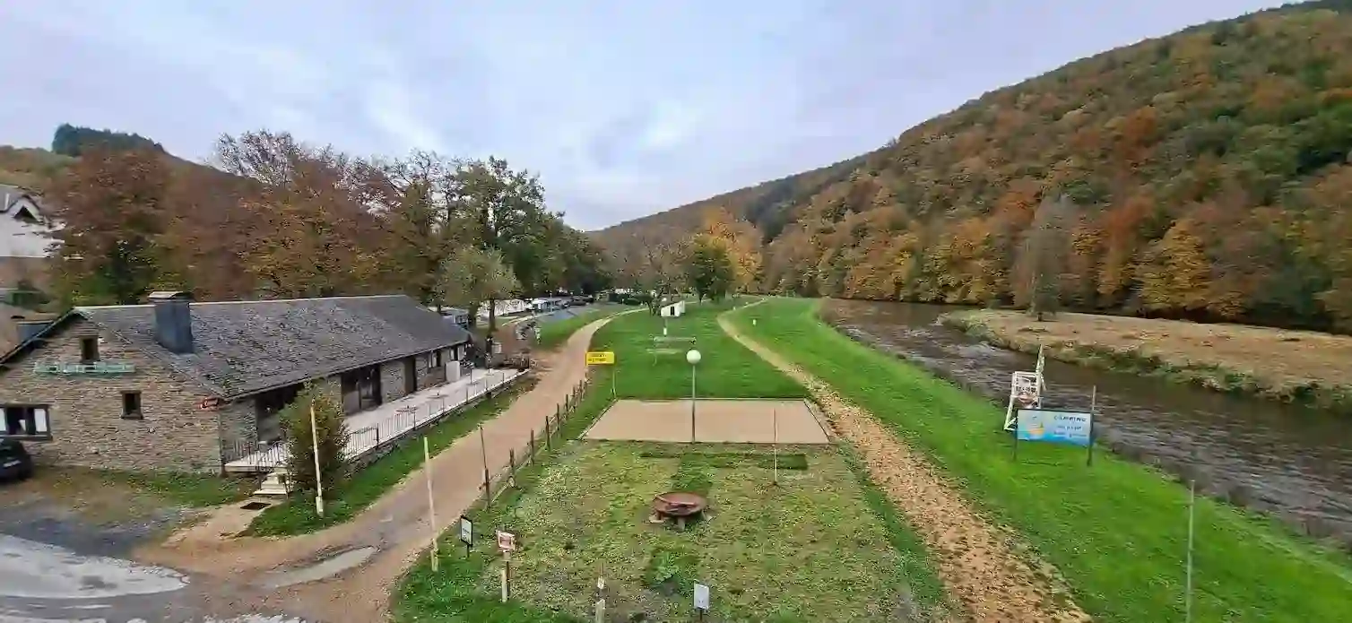 De camping is gevestigd op het officiële adres: Rue du Pont 2, 6830 Poupehan — direct aan de oevers van de waterloop. Deze ligging onderin de vallei biedt een dubbel voordeel: een relatief vlak terrein, onmisbaar voor het ontvangen van caravans en campers, en een direct visueel en fysiek toegang tot de rivier — een landschappelijke troef die direct te gelde wordt gemaakt via de "Blauwe Zone" (zie hieronder).